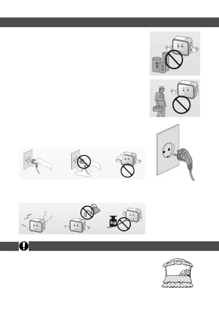 • Do not install near any heat sources such as radiators, stoves,