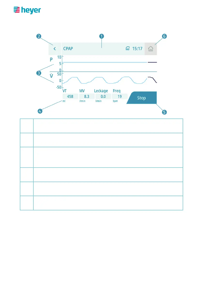 Pressure curve (“P“, depending on setting in hPa, mbar or cmH