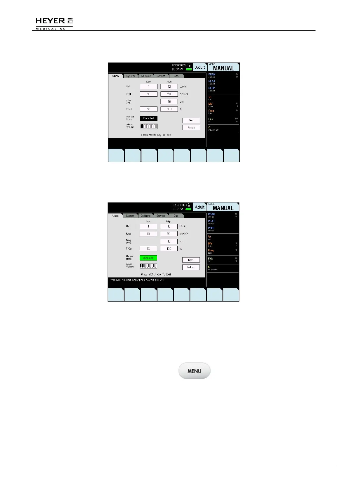 The patient’s pressure, tidal, and asphyxiation alarms will not be displayed.