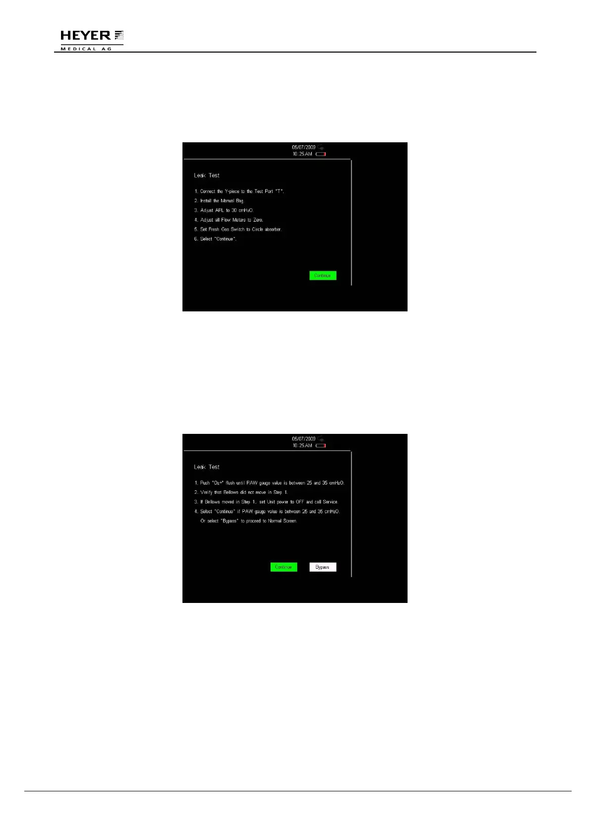 The Leak Test includes verification of APL valve and Flowmeter. Click “Continue” to begin the leak