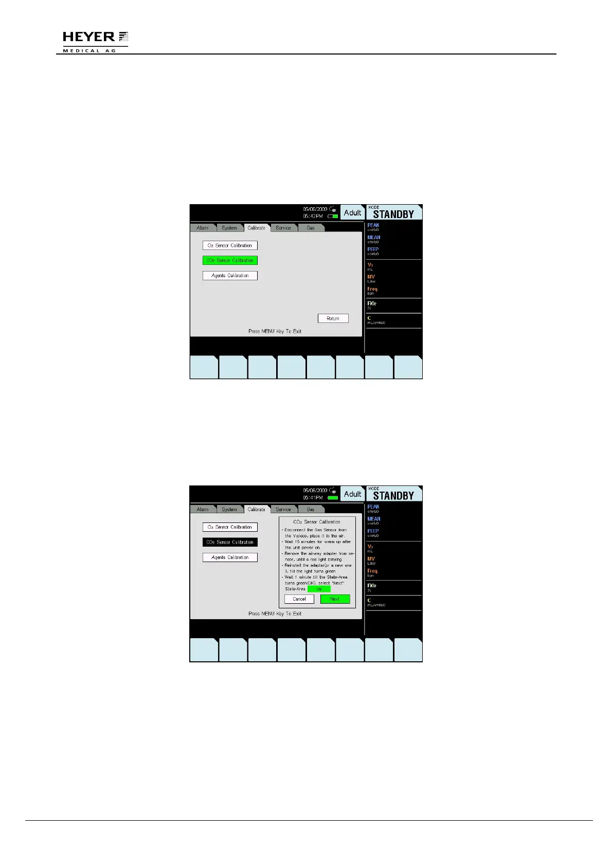 Disconnect the Gas sensor from the Y-piece, and place it in the air for no less than 15 minutes.