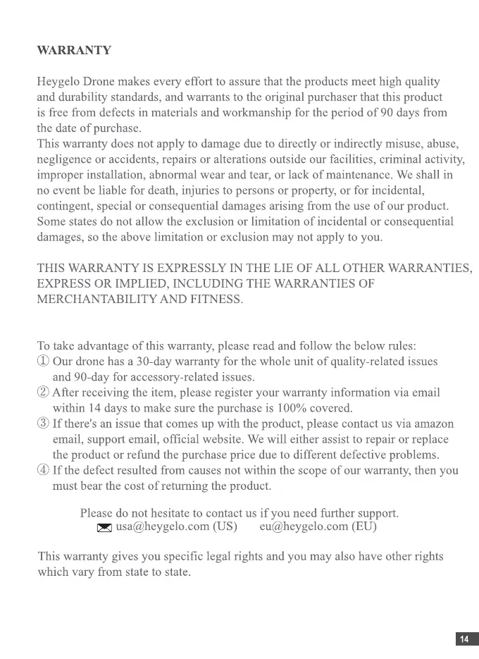 (J)Our dronehasa 30-daywarrantyfor the whole unit of quality-relatedissues