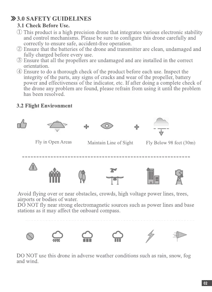 Maintain Line of Sight Fly Below 98 feet (30m)