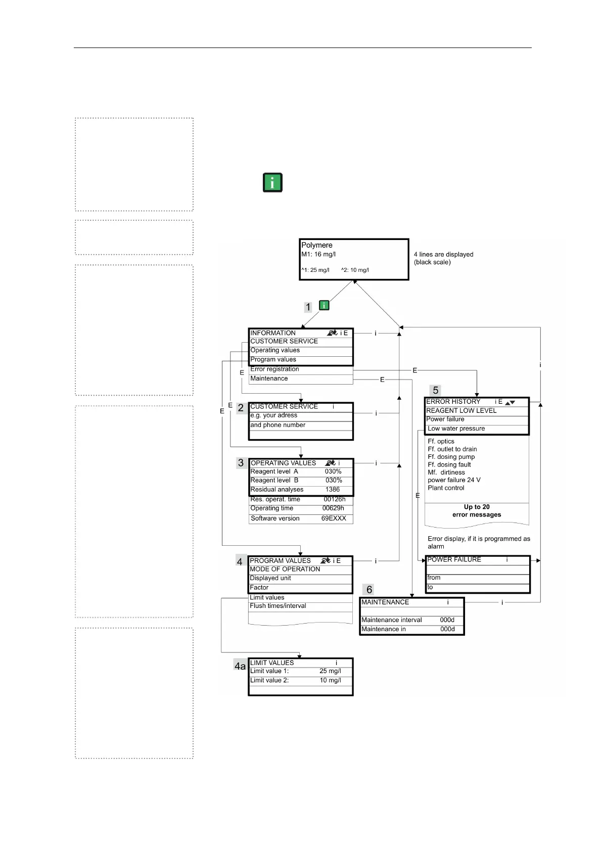 In the information menu, it is possible to request active settings and