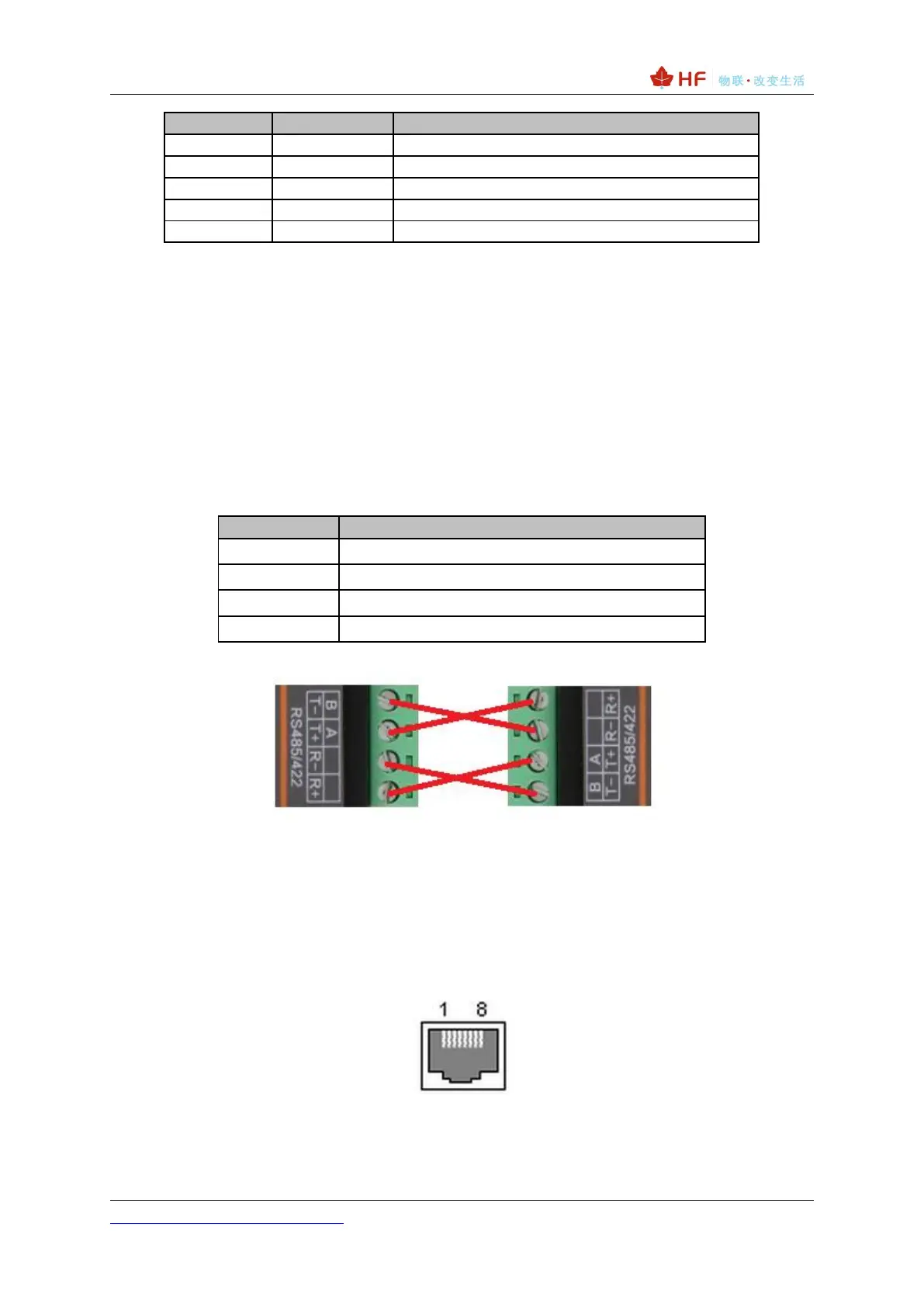 RS422 interface use T+/T-/R+/R-, cross connect to device as the following picture.