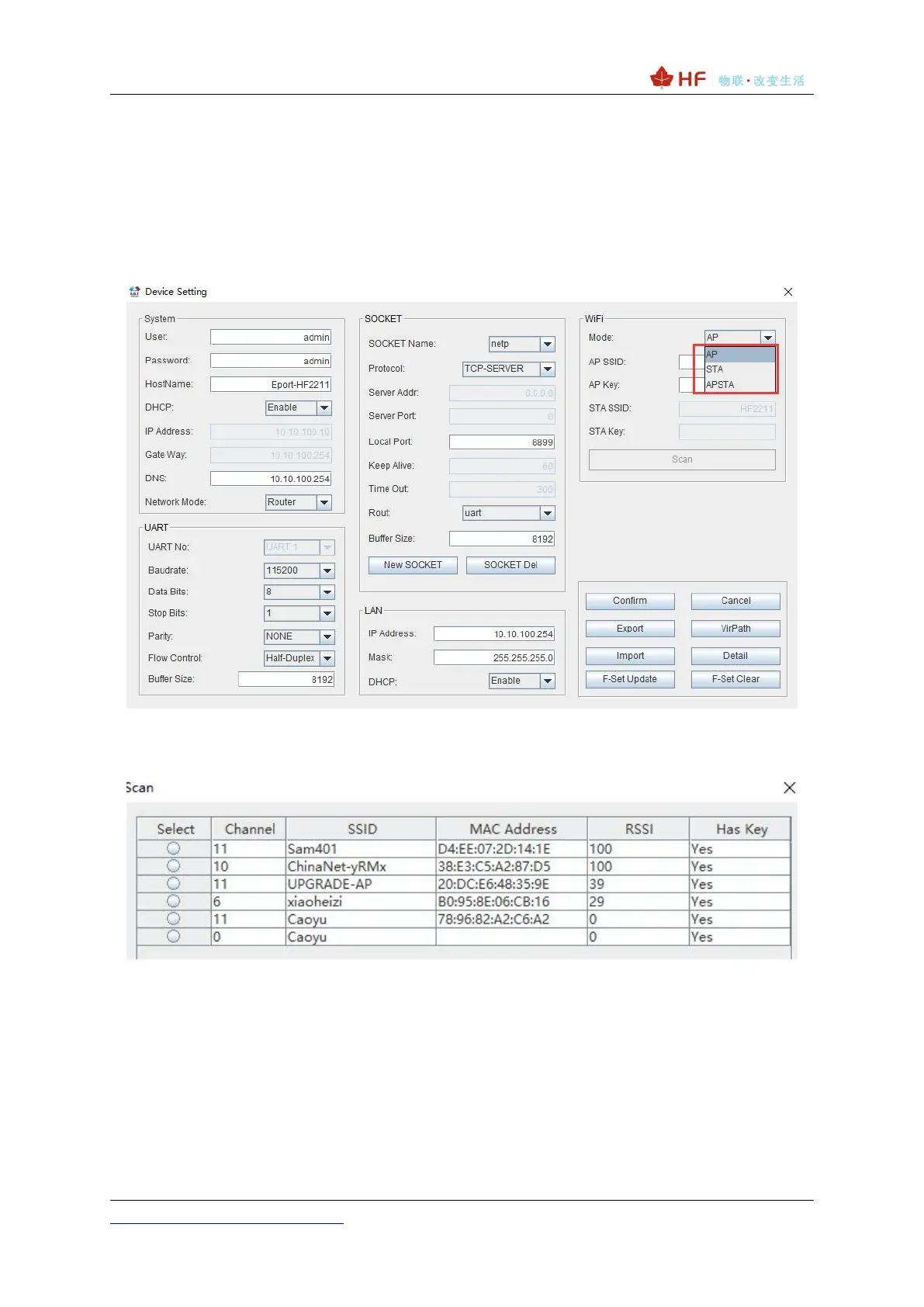 Use PC to connect with HF2211A through its AP hotspot or Ethernet connection. Input the default
