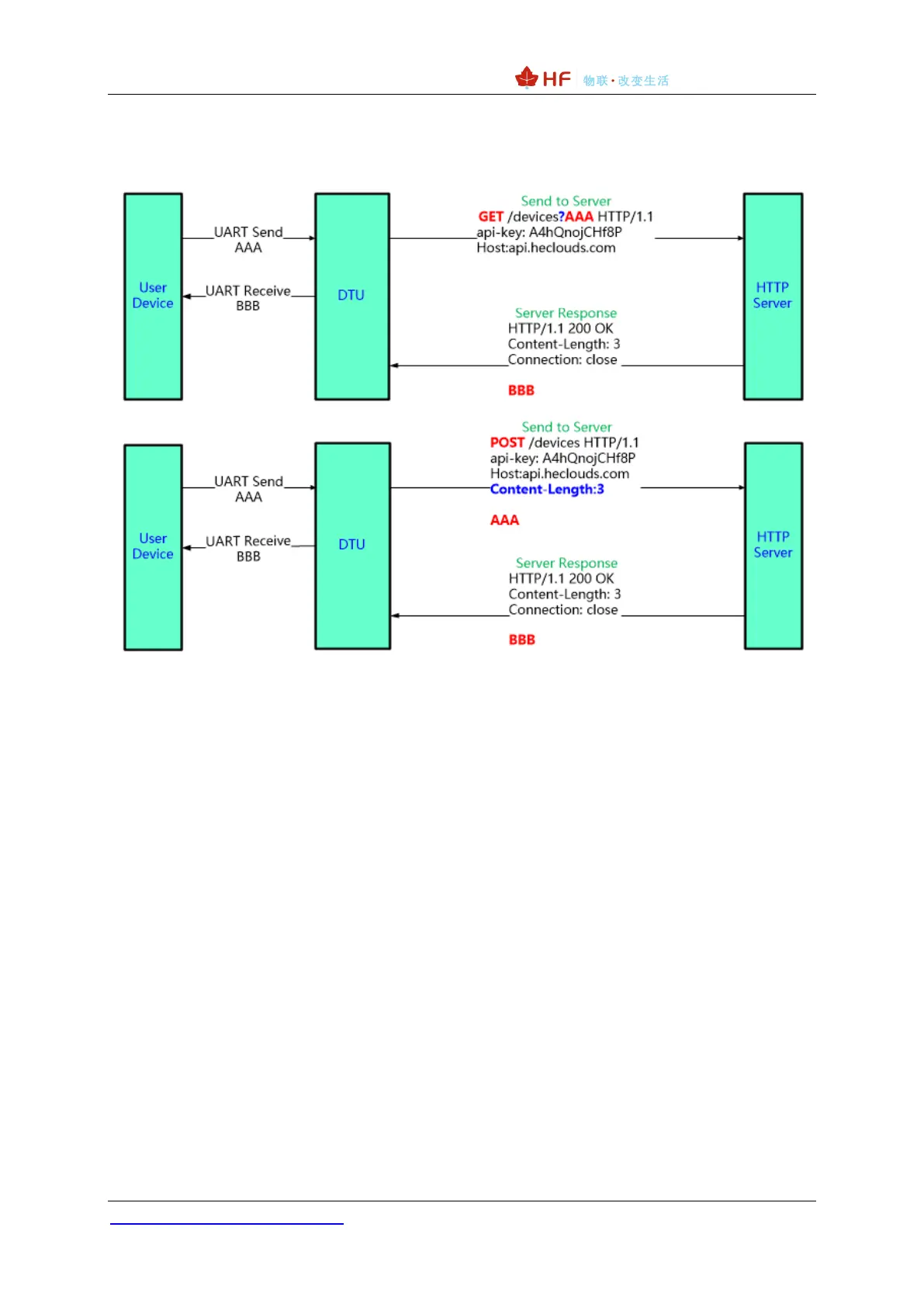 Product will send the below data to HTTP Server when UART receive “pppp” data for GET