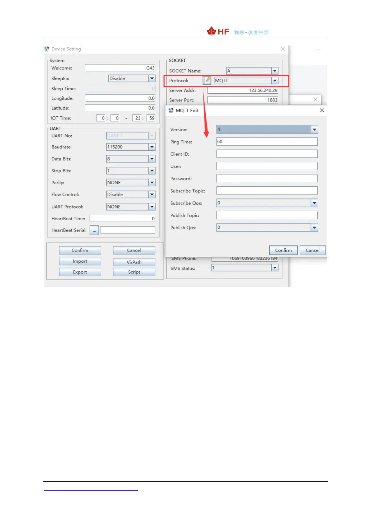 When the connection is established (TCP only) or the serial port data is received, the content of the