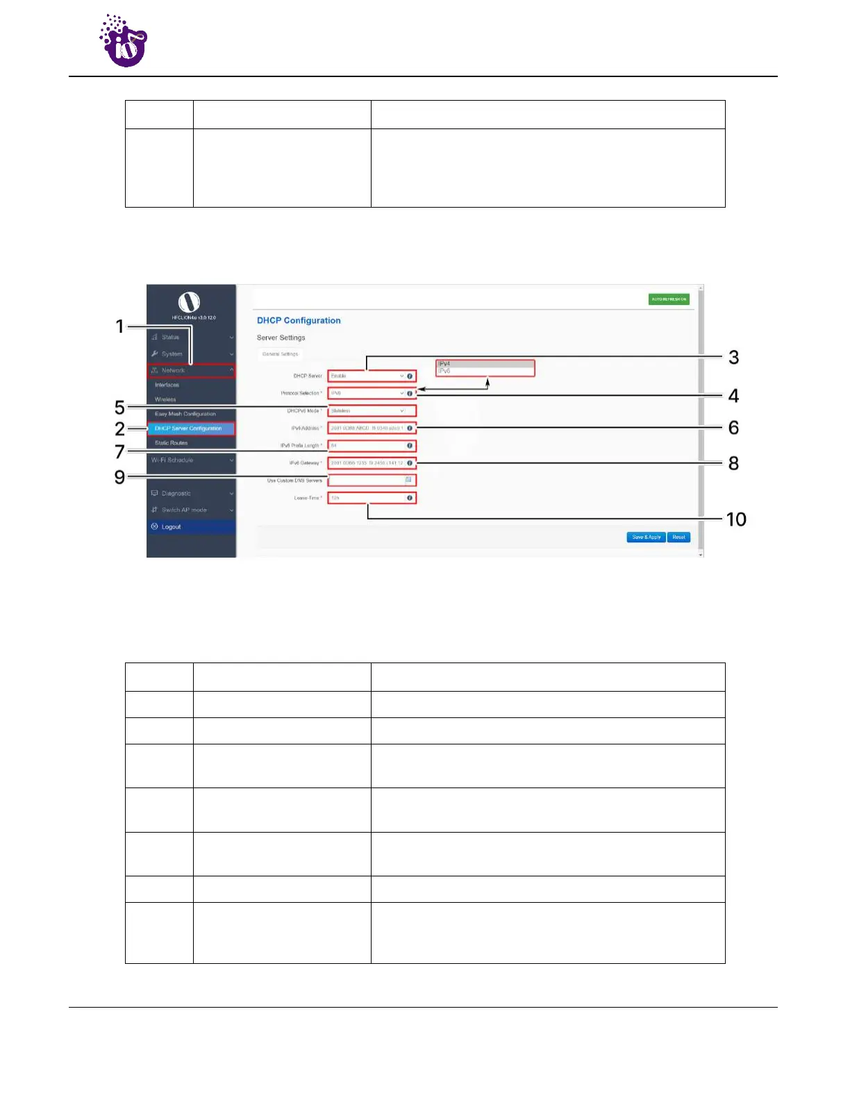 6. IPv6 Address Enter the address in IPv6 format for the DHCP server