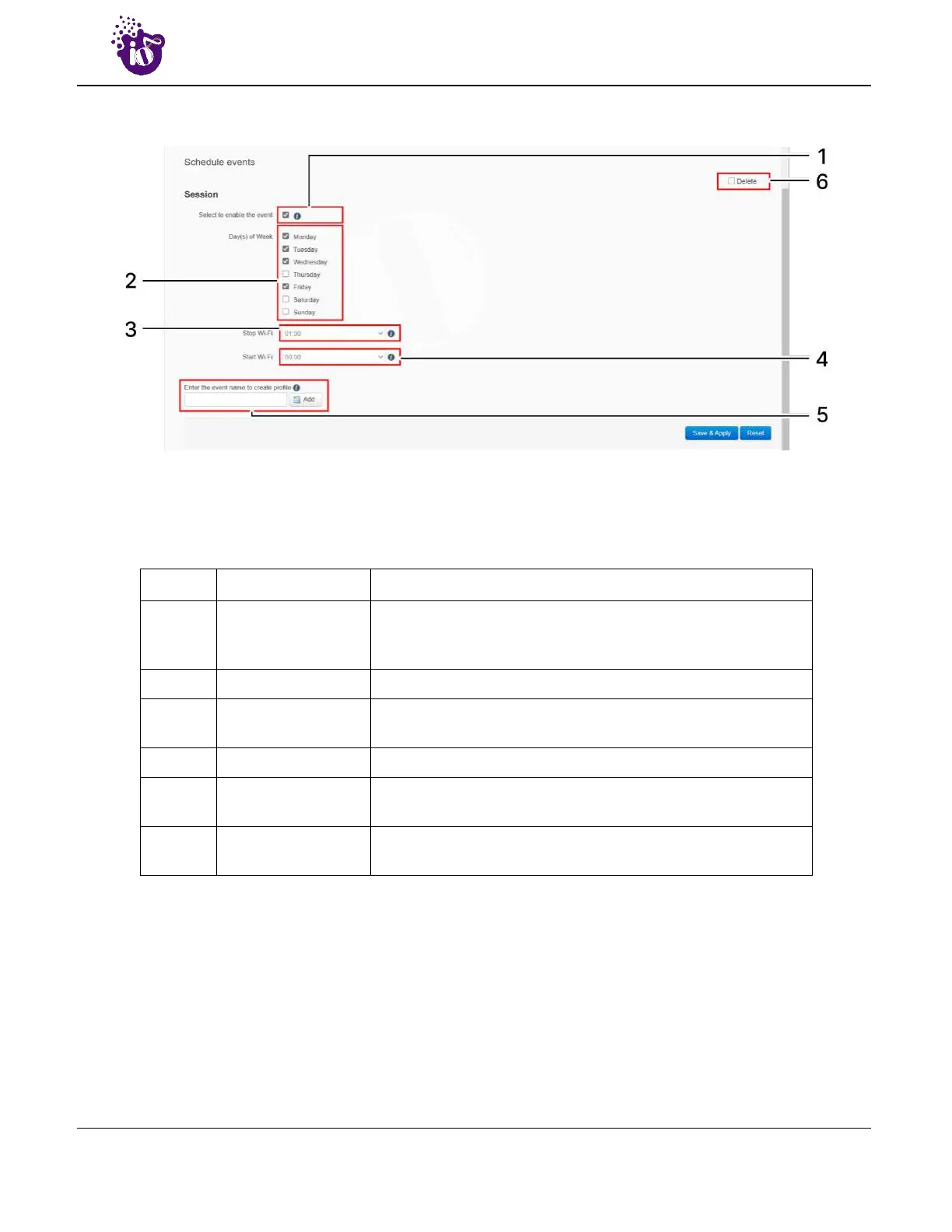 Table 37: List of actions to create, edit, or delete a Wi-Fi schedule