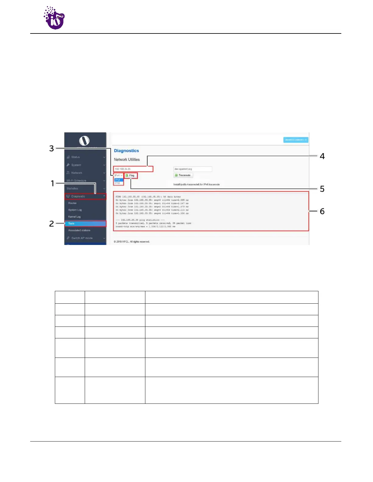 1. The user can check if the link connection is established or not with “Ping” option