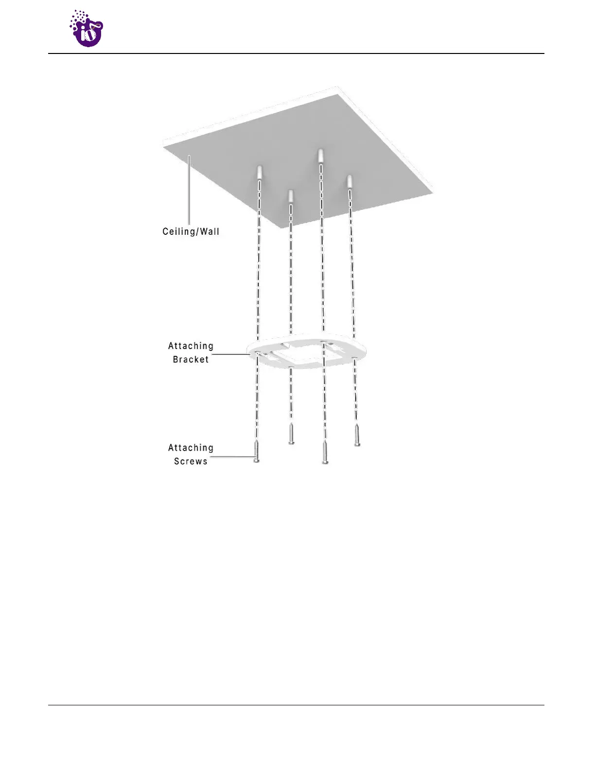 4. Use the supplied screws and mount the attaching bracket on to the wall or ceiling as shown below: