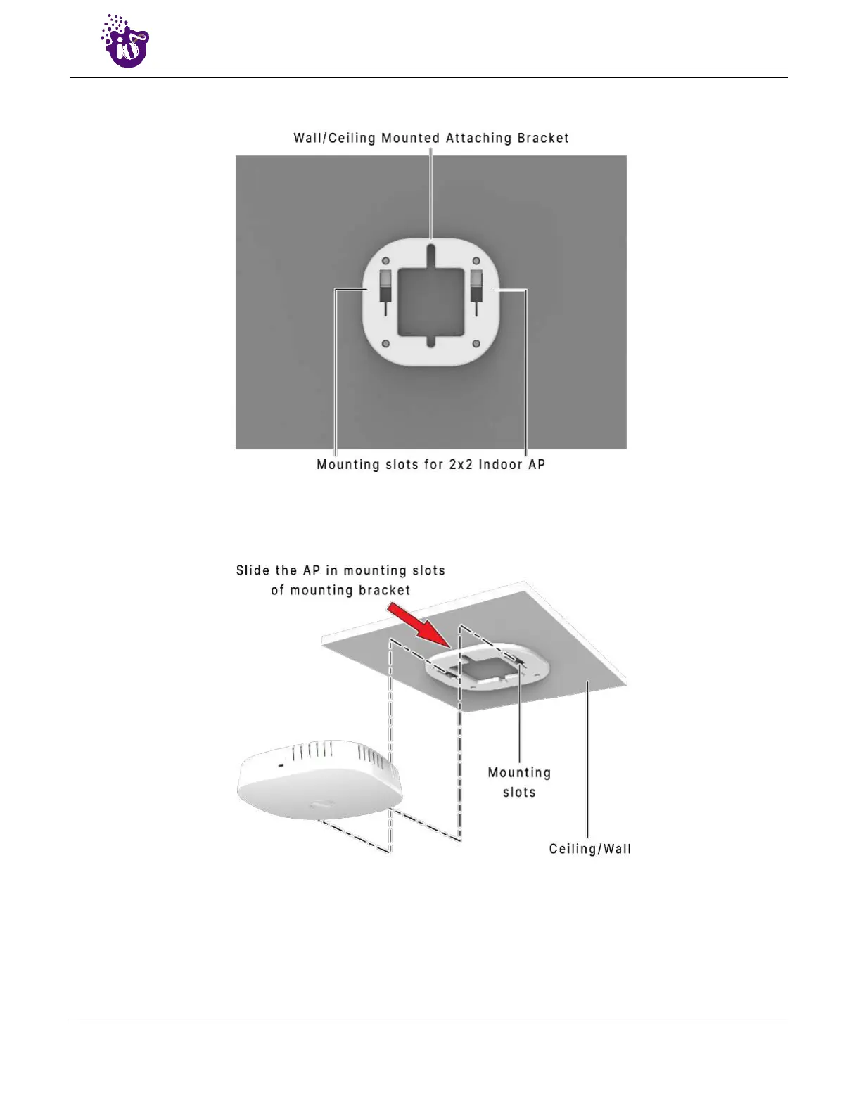 6. Align the mounting slots of indoor AP and attaching bracket as shown below: