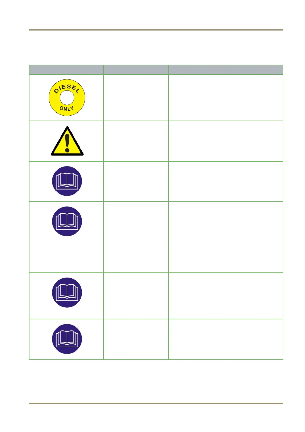 The generator is tted with a number of labels that alert the user to the safe operation and safety requirements.