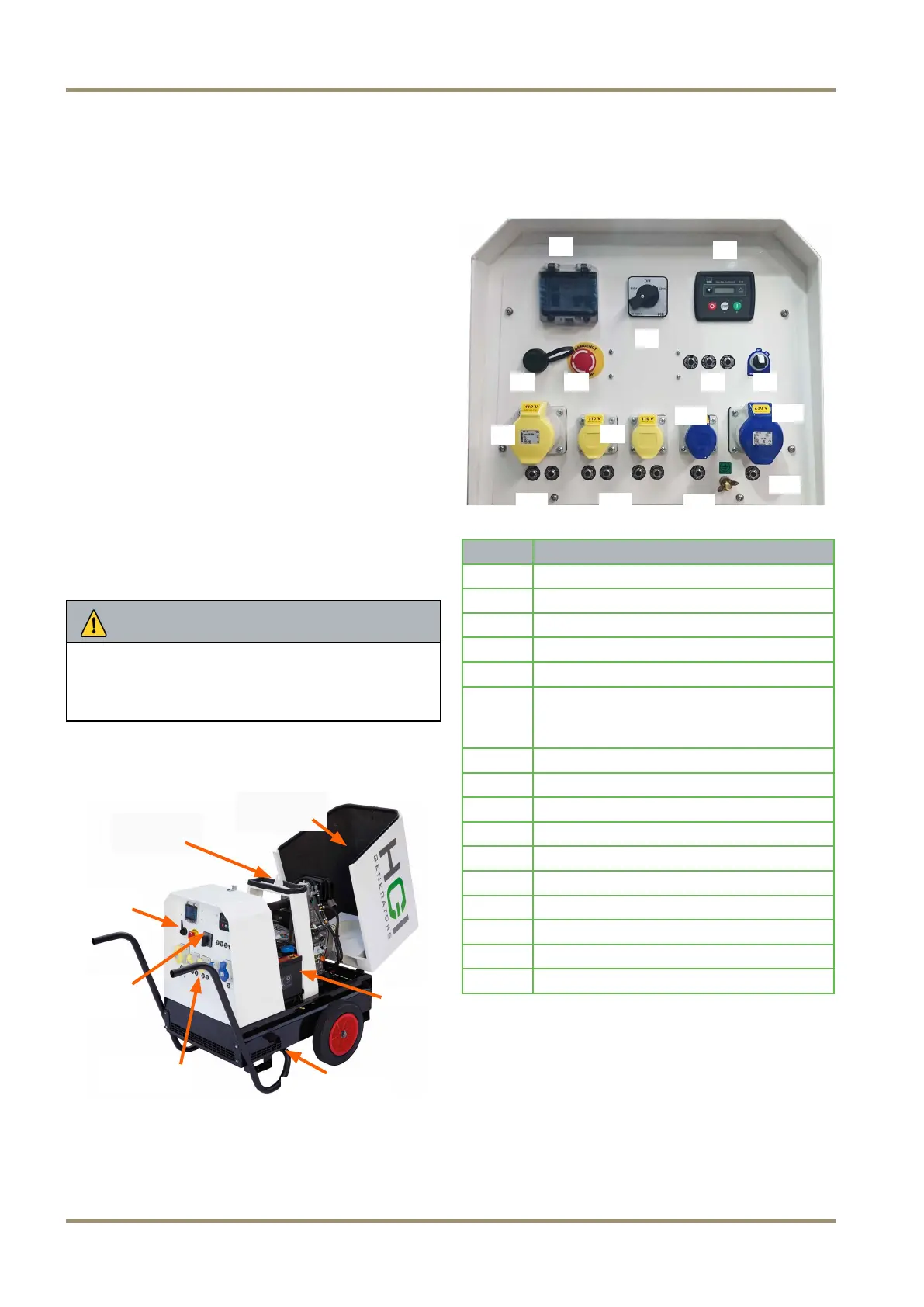 warning information about the generator.
