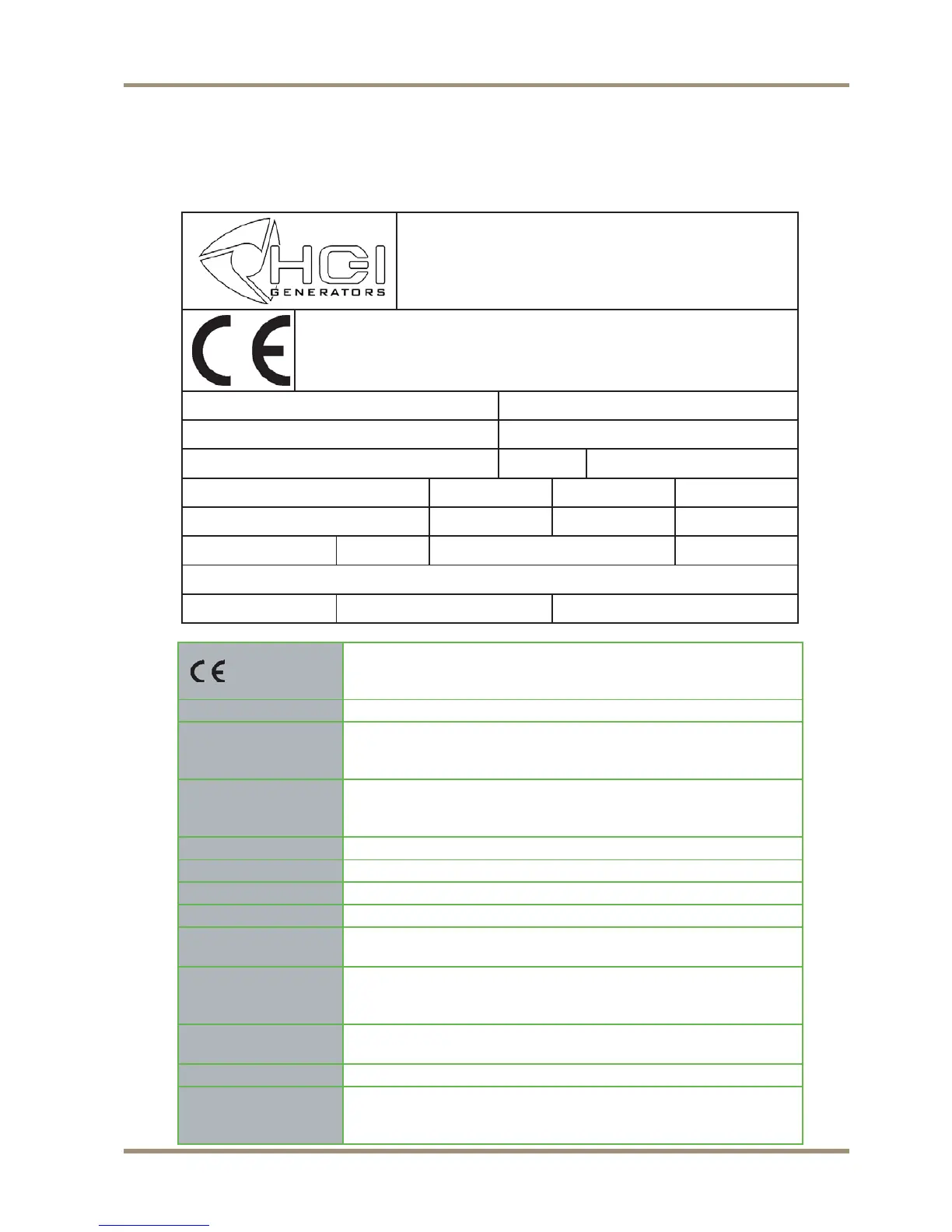75% auxiliary power. This generator complies with the CE Directive