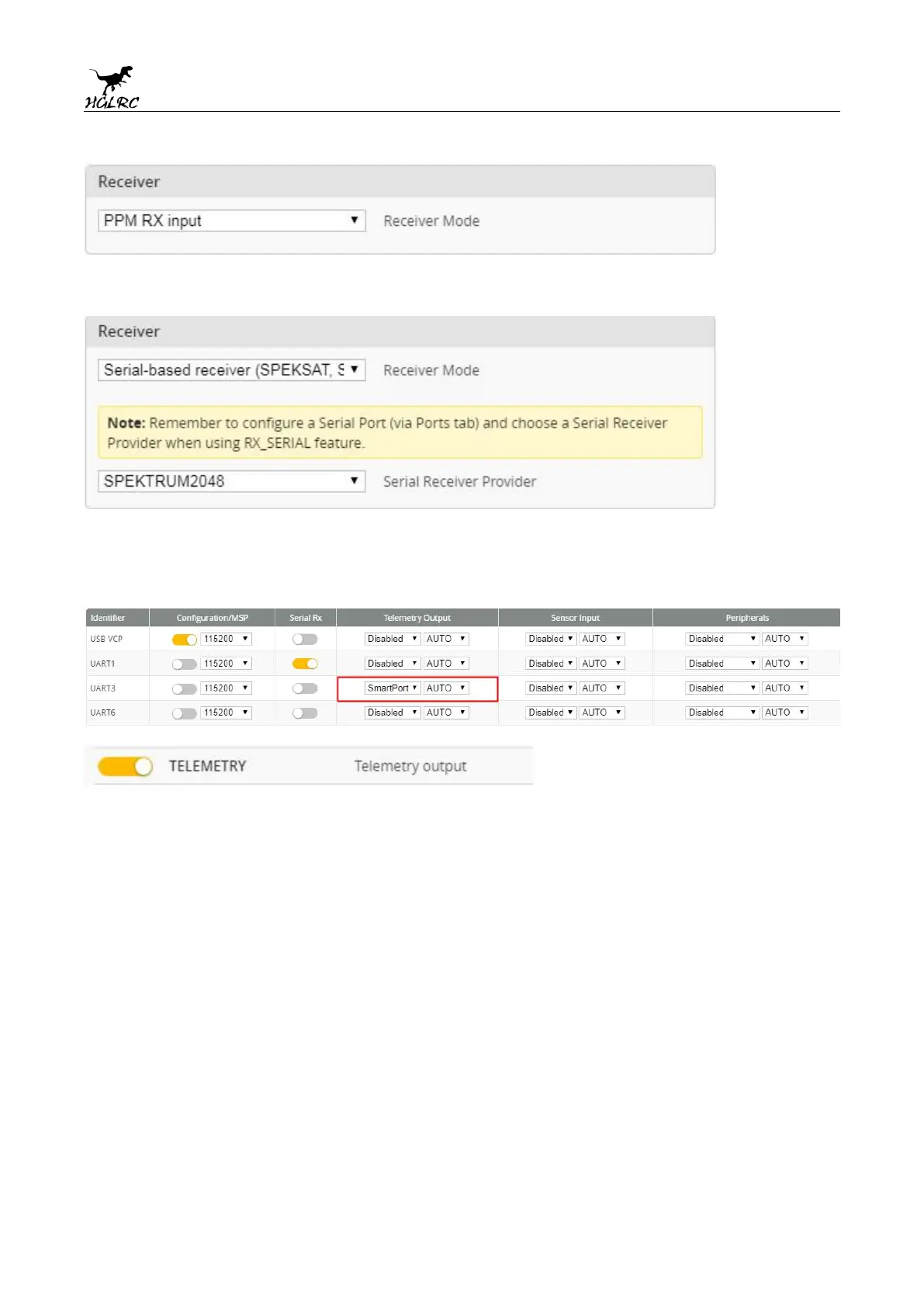 6.Turn on the receiver telemetry serial port Function on