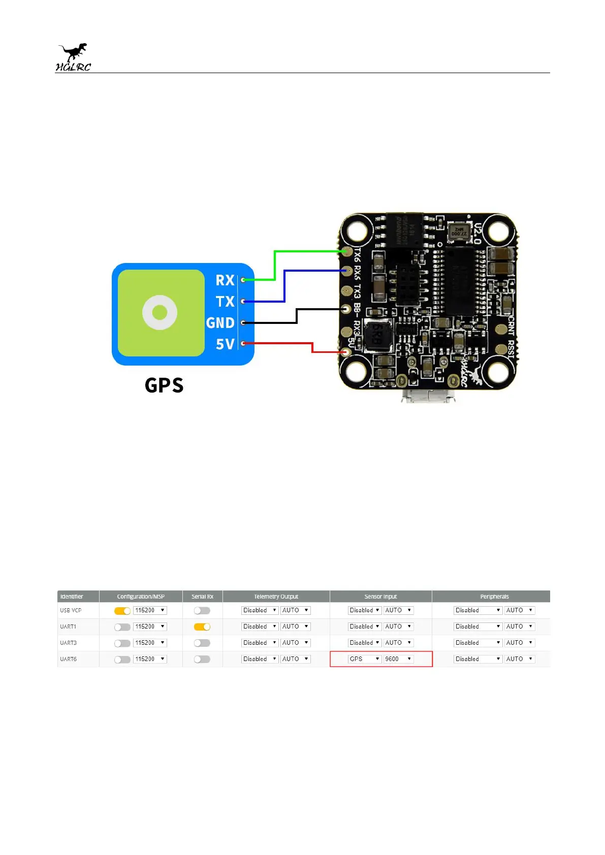 HGLRC F428 - GPS parameters setting; GPS connection diagram; Open the GPS serial port