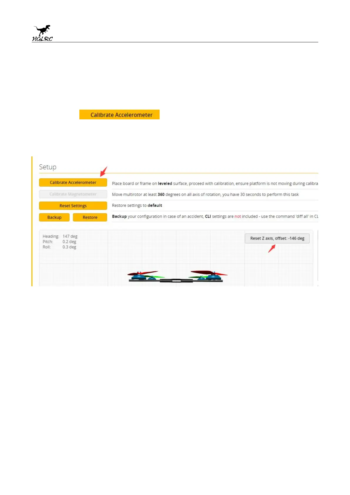 HGLRC F428 - Calibration accelerometer