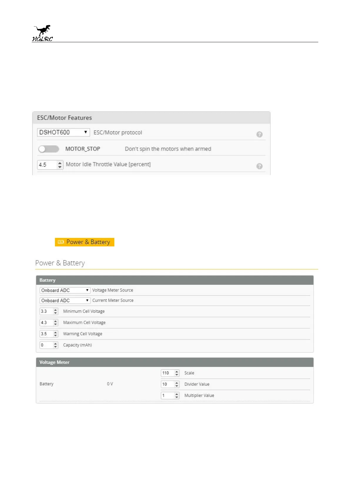 HGLRC Zeus10 - Choose ESC Protocol; Voltage and Current Parameters Setting