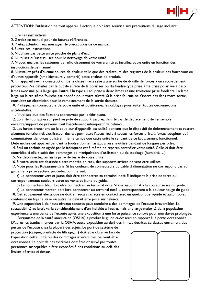 HH Electronics SYSTEM 2 S2-210 - Instructions Importantes de Securite - Français