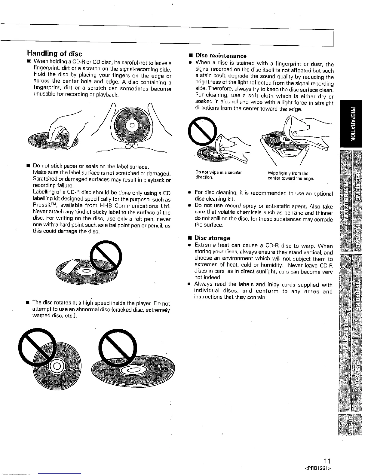HHB CDR-800 - Handling of disc; Disc maintenance; Disc storage