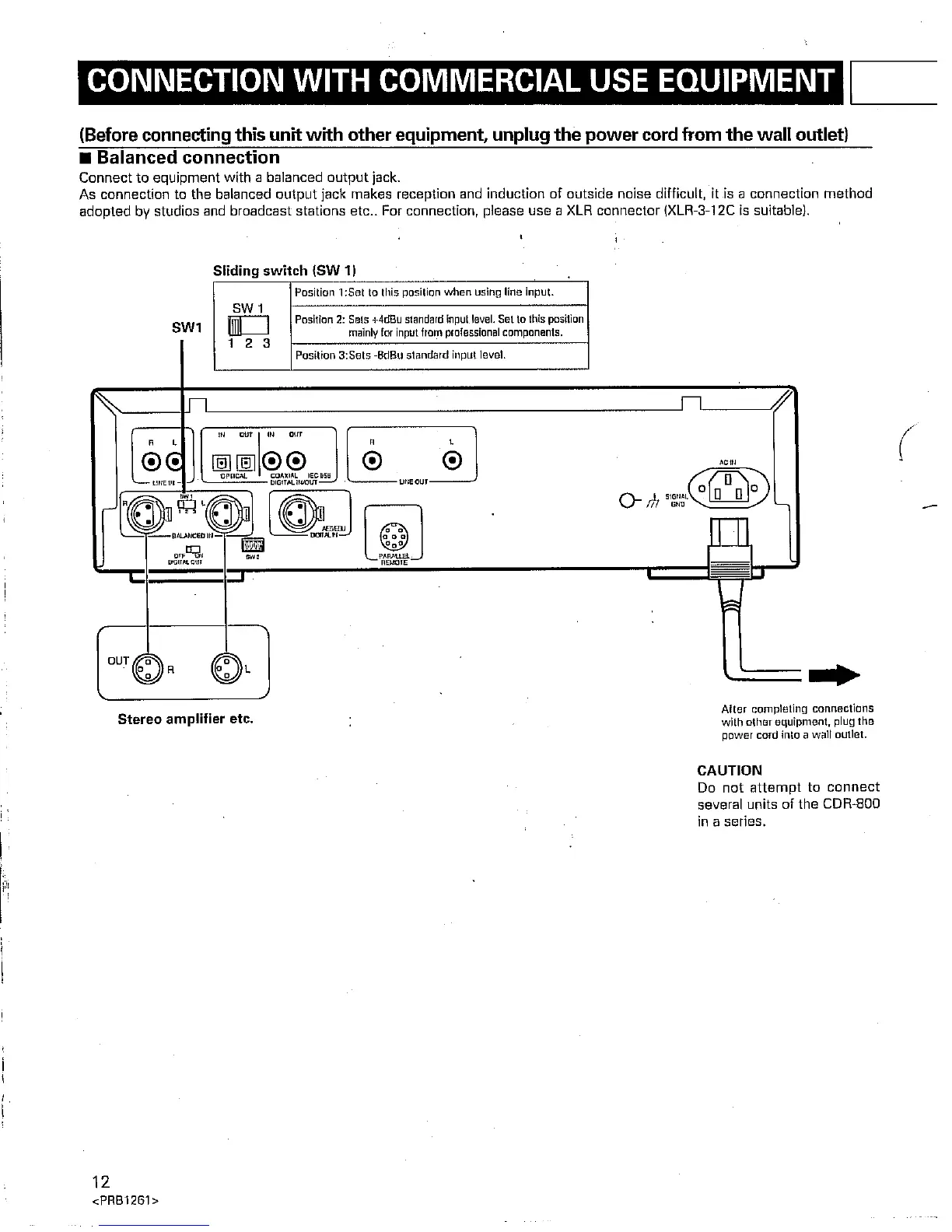 HHB CDR-800 - CONNECTION WITH COMMERCIAL USE EQUIPMENT; Balanced connection