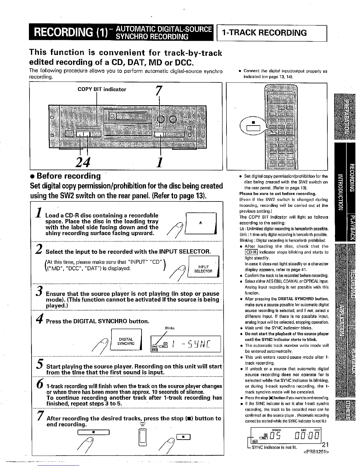 HHB CDR-800 - RECORDING (1) AUTOMATIC DIGITAL-SOURCE SYNCHRO RECORDING (1-TRACK RECORDING); Before recording