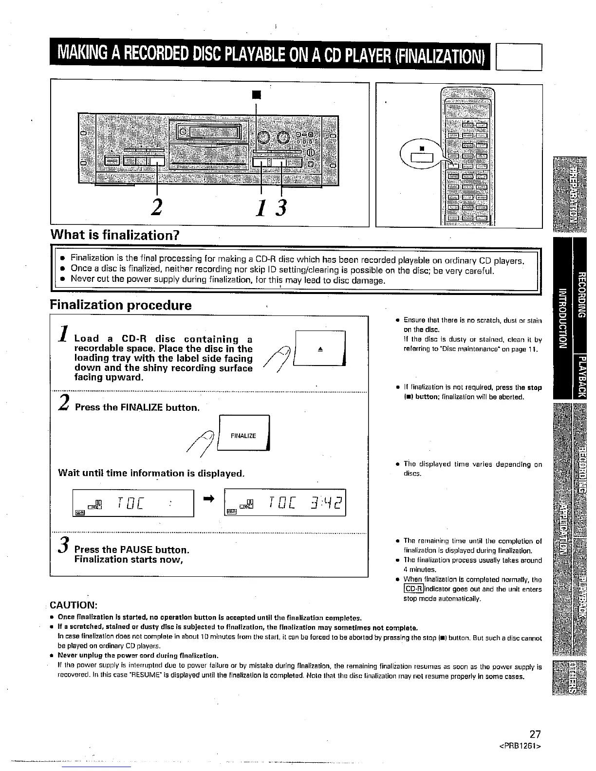 HHB CDR800 - Making a Recorded Disc Playable on a CD Player (Finalization); What is Finalization?; Finalization Procedure