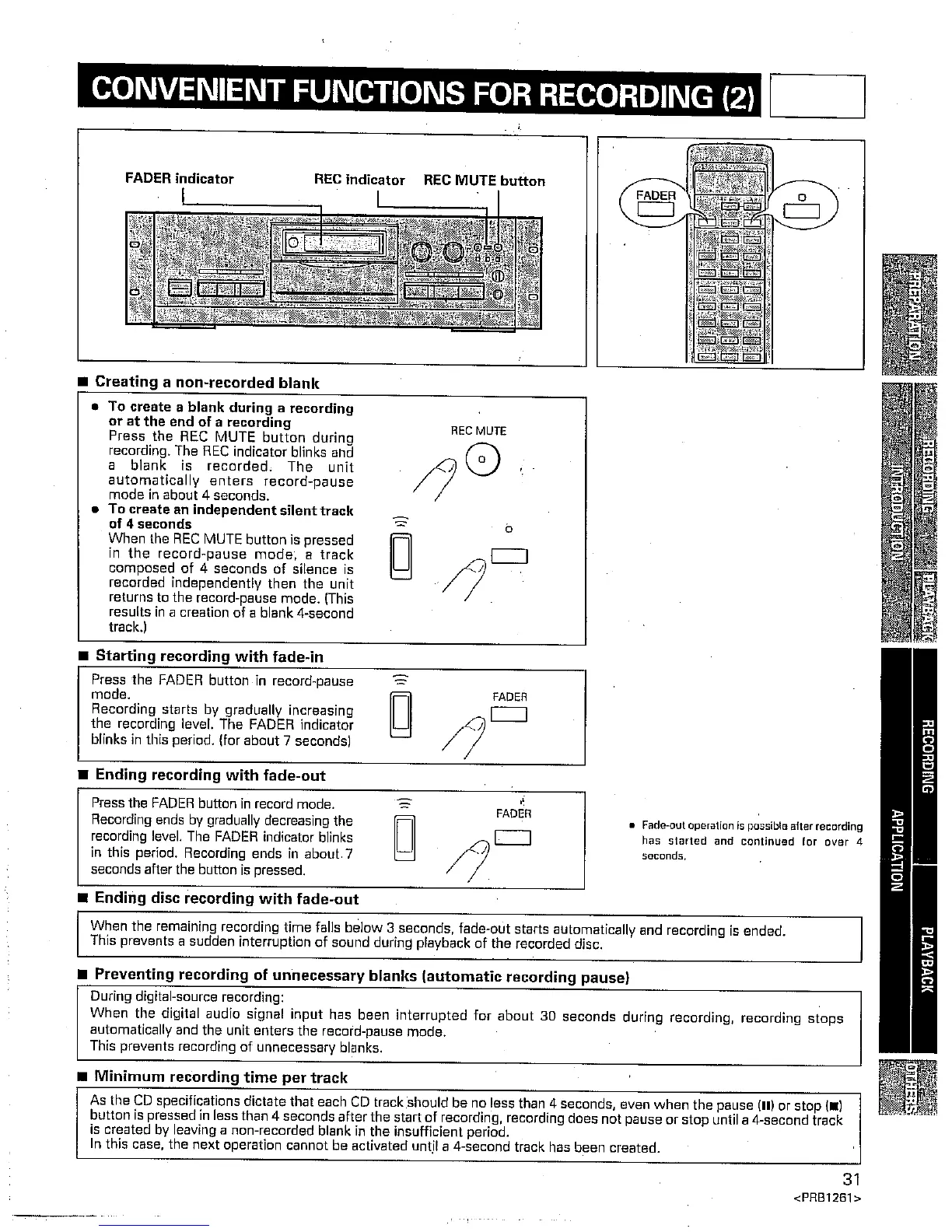 HHB CDR800 - Convenient Functions for Recording (2); Creating Non-Recorded Blank Tracks; Fade-In;Fade-Out Recording Functions; Preventing Unnecessary Blanks