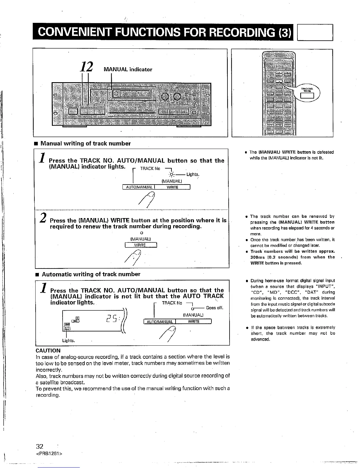 HHB CDR800 - Convenient Functions for Recording (3); Manual Track Number Writing; Automatic Track Number Writing