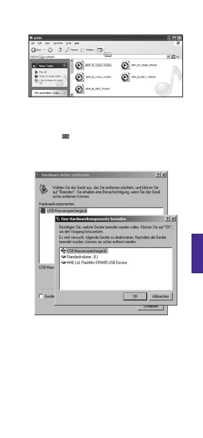 von Windows. Der Dialog zur sicheren Entfernung von Hardware erscheint,