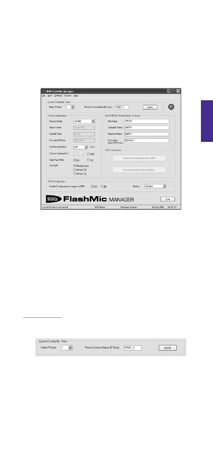 To see these parameters displayed in FlashMic Manager, click File>New (or hit CTRL+N).