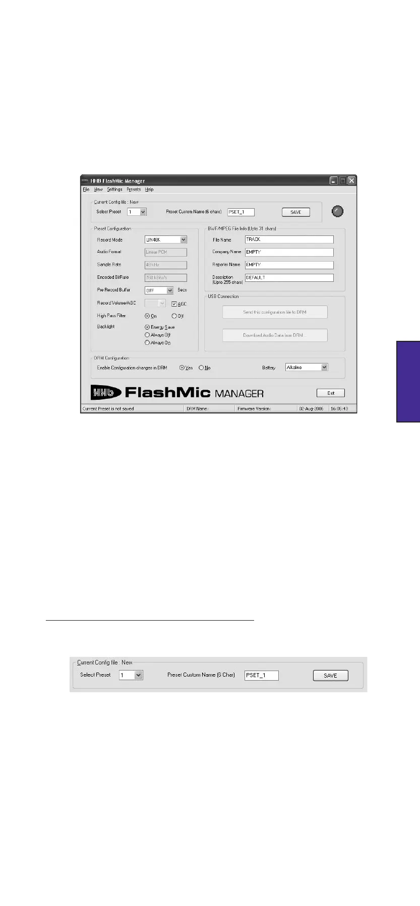 Pour voir ces paramètres affichés dans le FlashMic Manager, cliquez sur File>New (ou