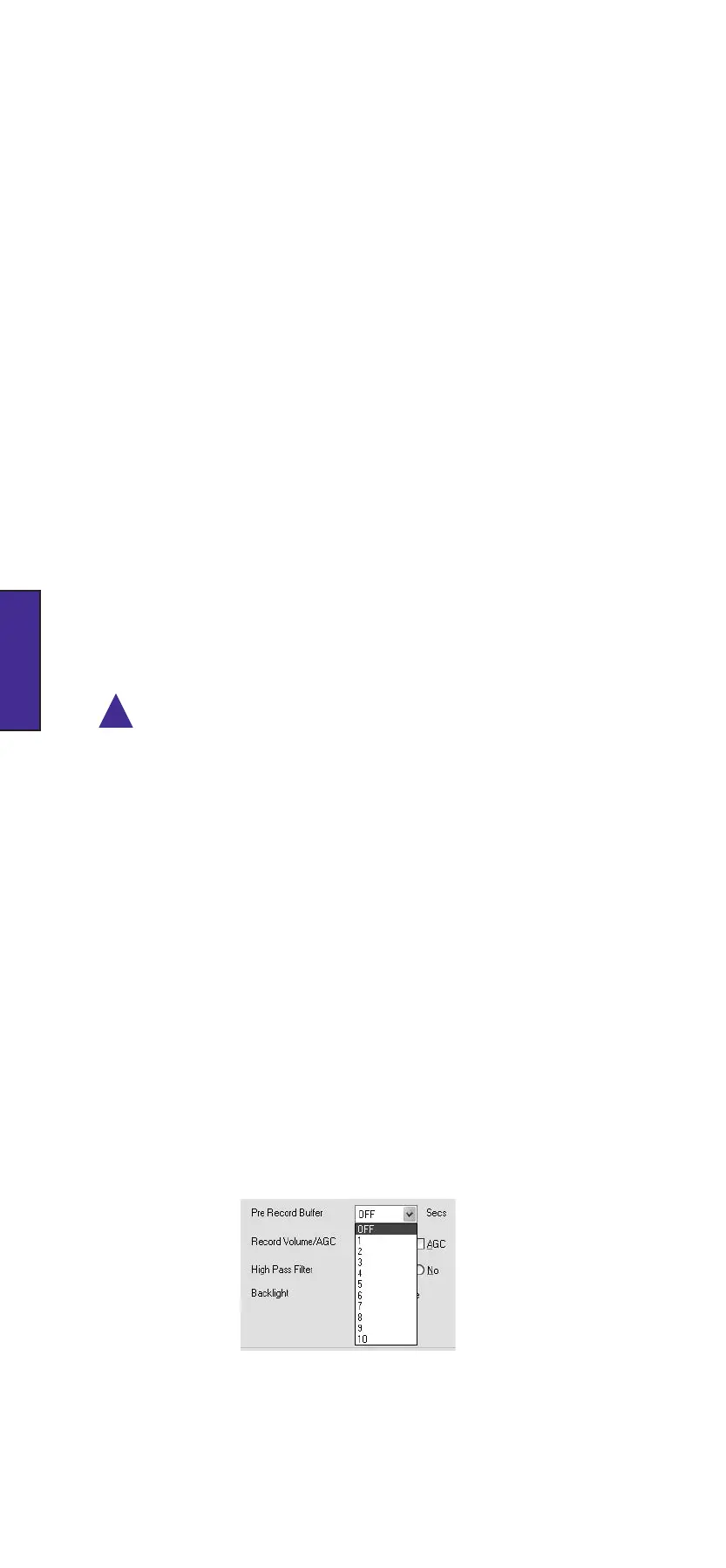 Le FlashMic n’a pas lui-même de commandes pour la mémoire tampon de pré-enregistrement;