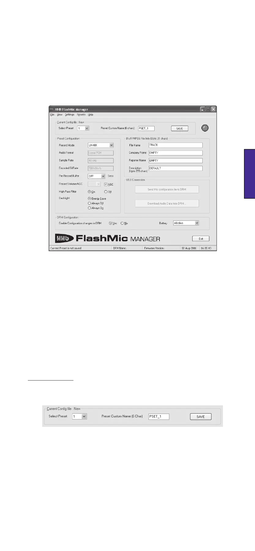 To see these parameters displayed in FlashMic Manager, click File>New (or hit CTRL+N).