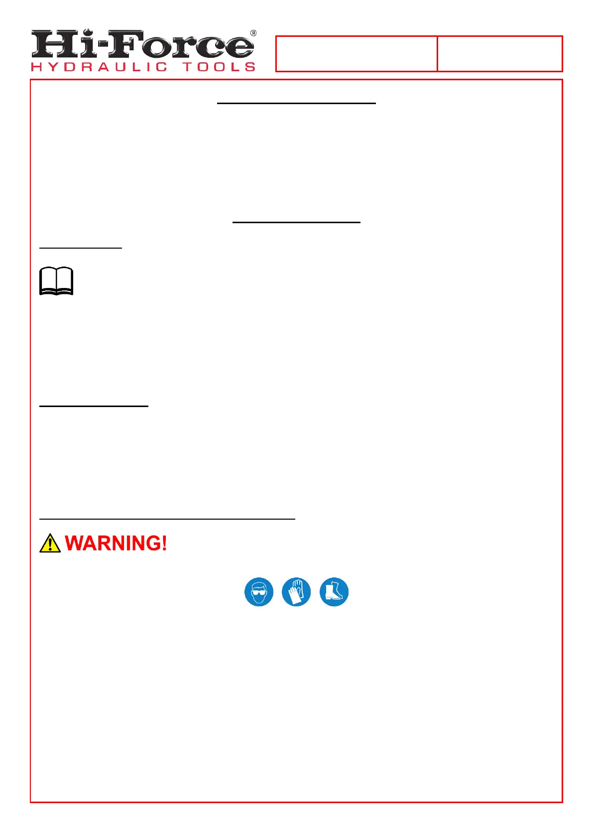not been trained on high-pressure hydraulic equipment and its safe usage, consult your local Hi-Force sales