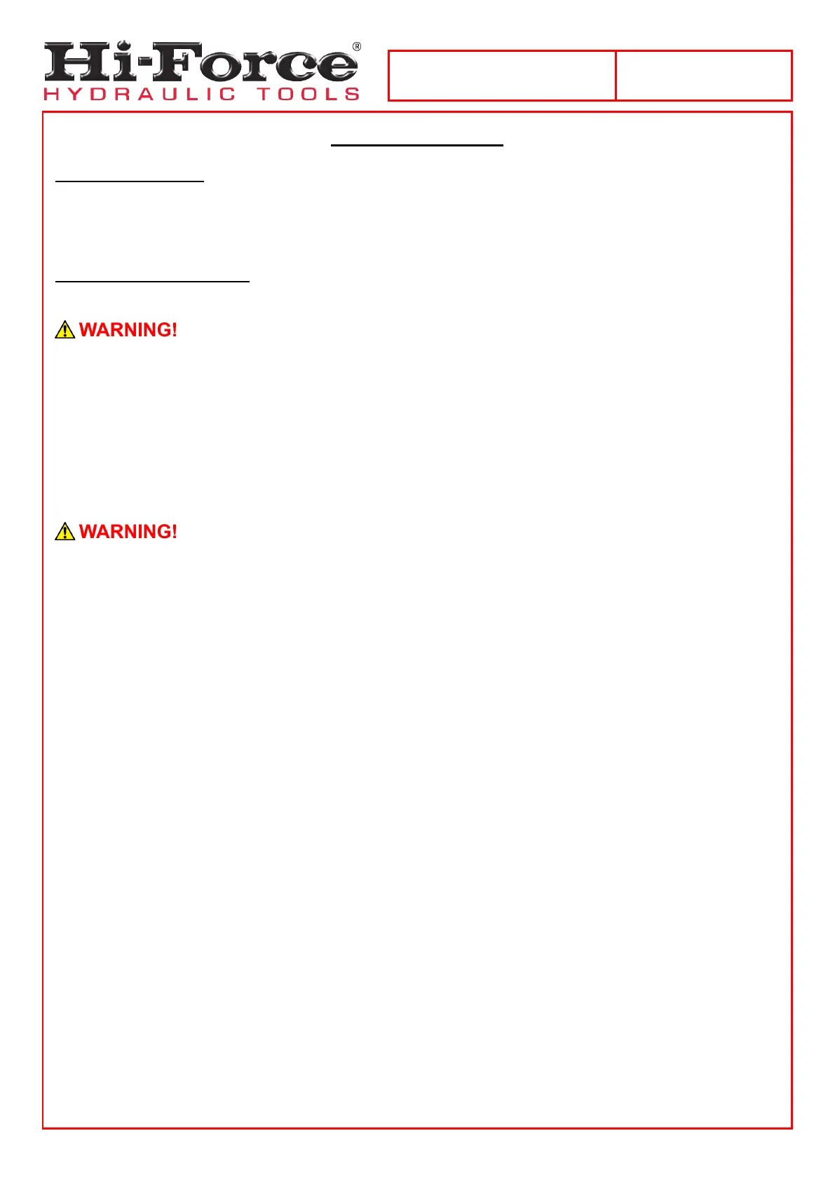 ALWAYS use Hi-Force HTWH hoses to make connections.