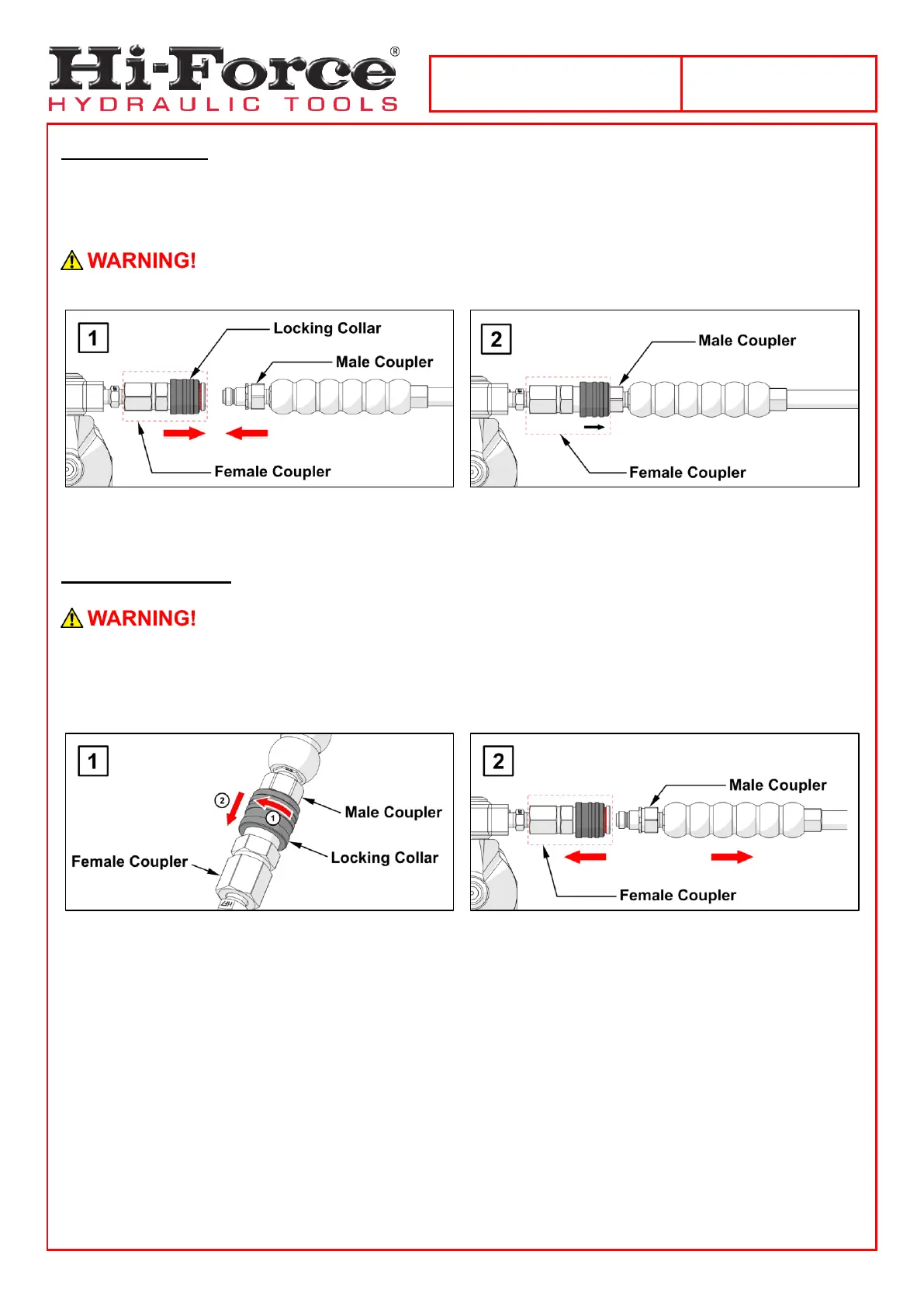 [1-2] pull back toward the female coupler body. [2] With the locking collar retracted, pull the male and female