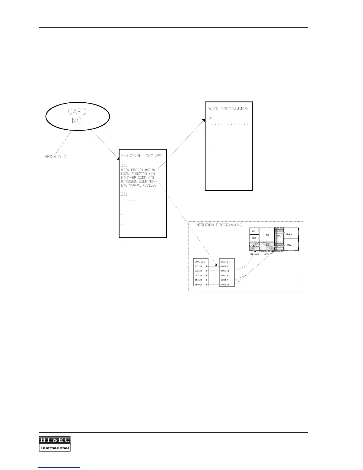The figure above shows the parameters to be programmed for each personnel group. Each function is