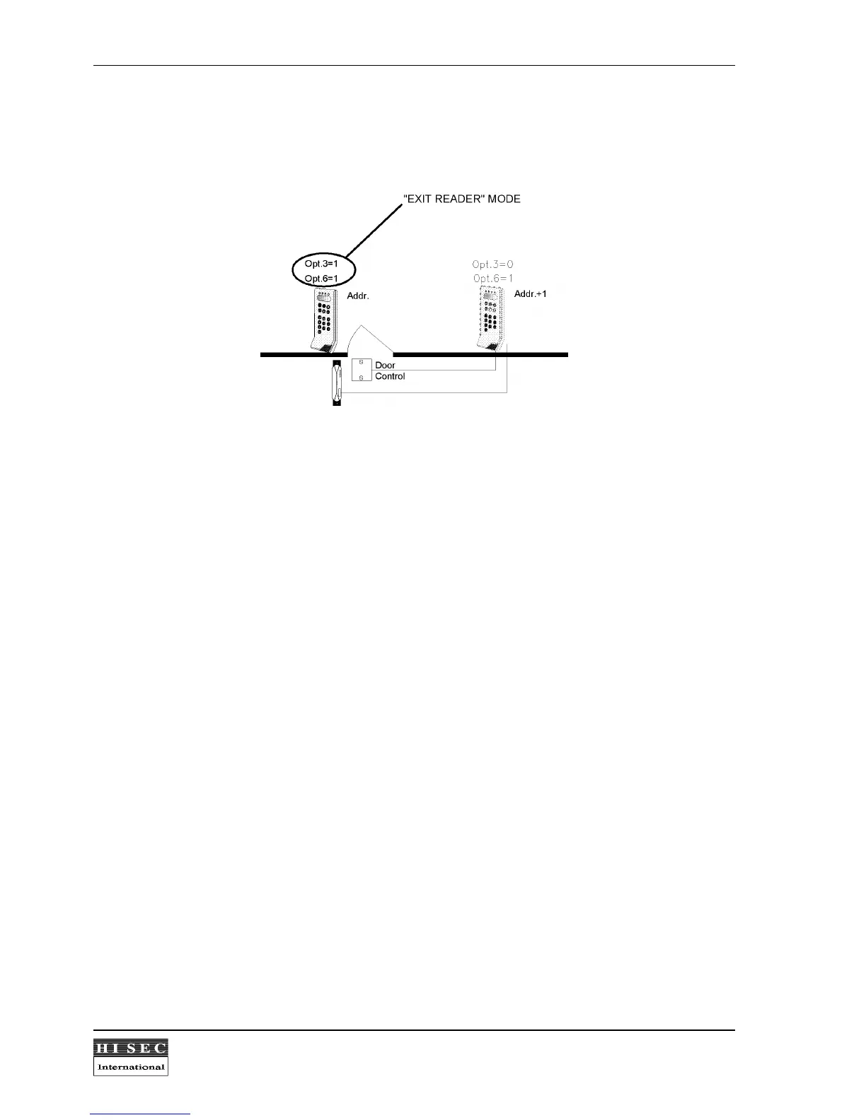 When a reader is programmed with both opt. 3 = 1 and opt. 6 = 1 as shown, the reader will function in an "exit