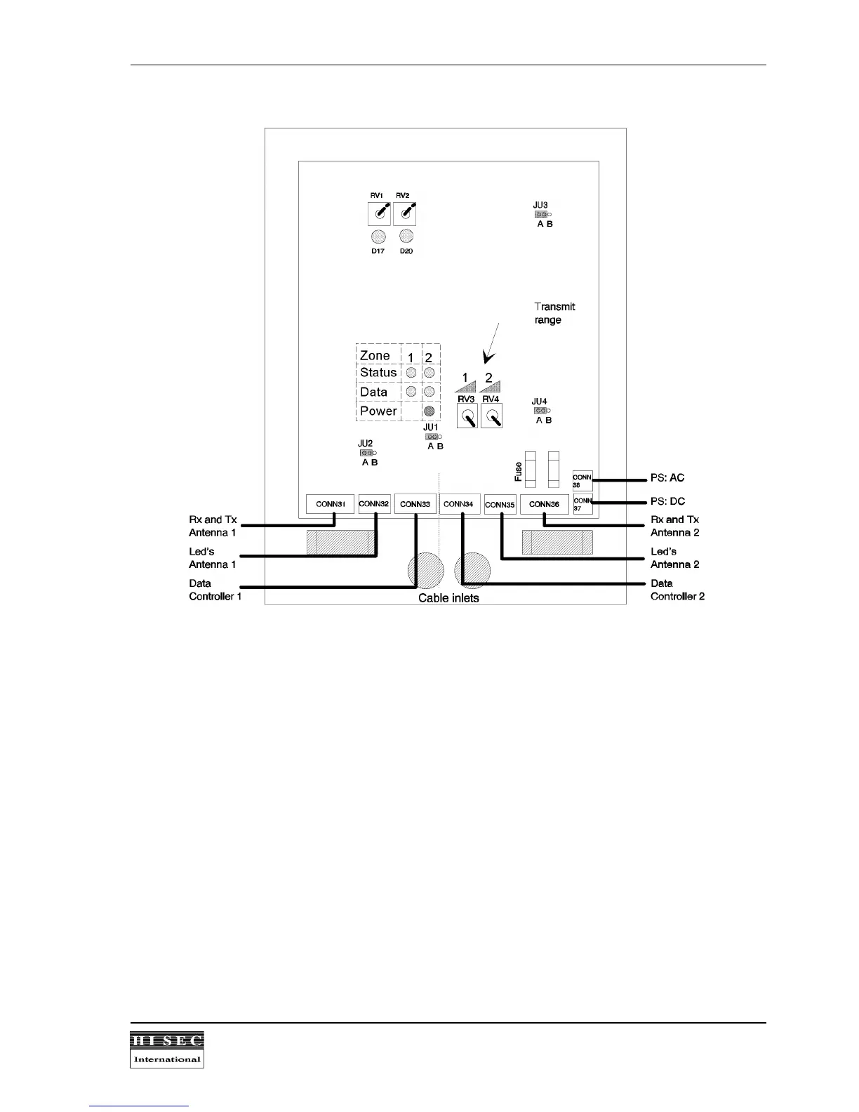 jumpers, switches or potentiometers should be changed. Only the potentiometers RV3 and RV4 can be adjusted