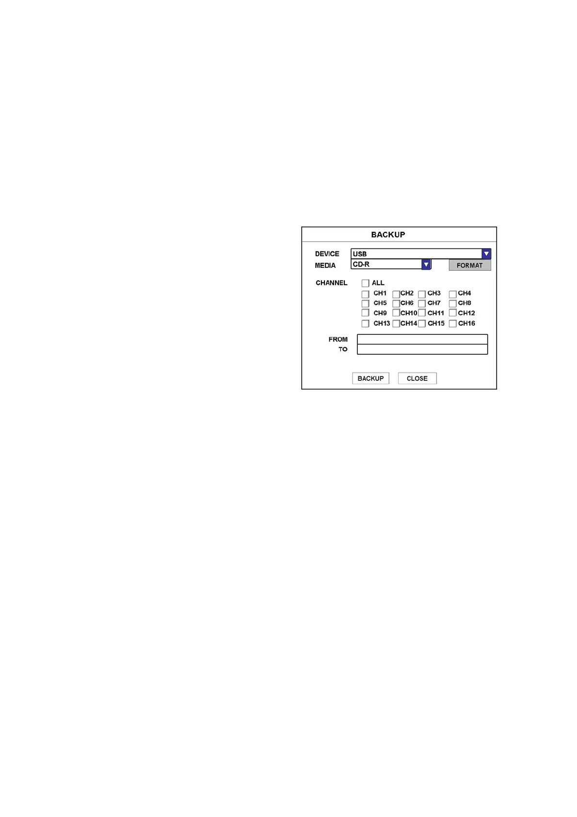 ● FROM – Enter starting date time to backup