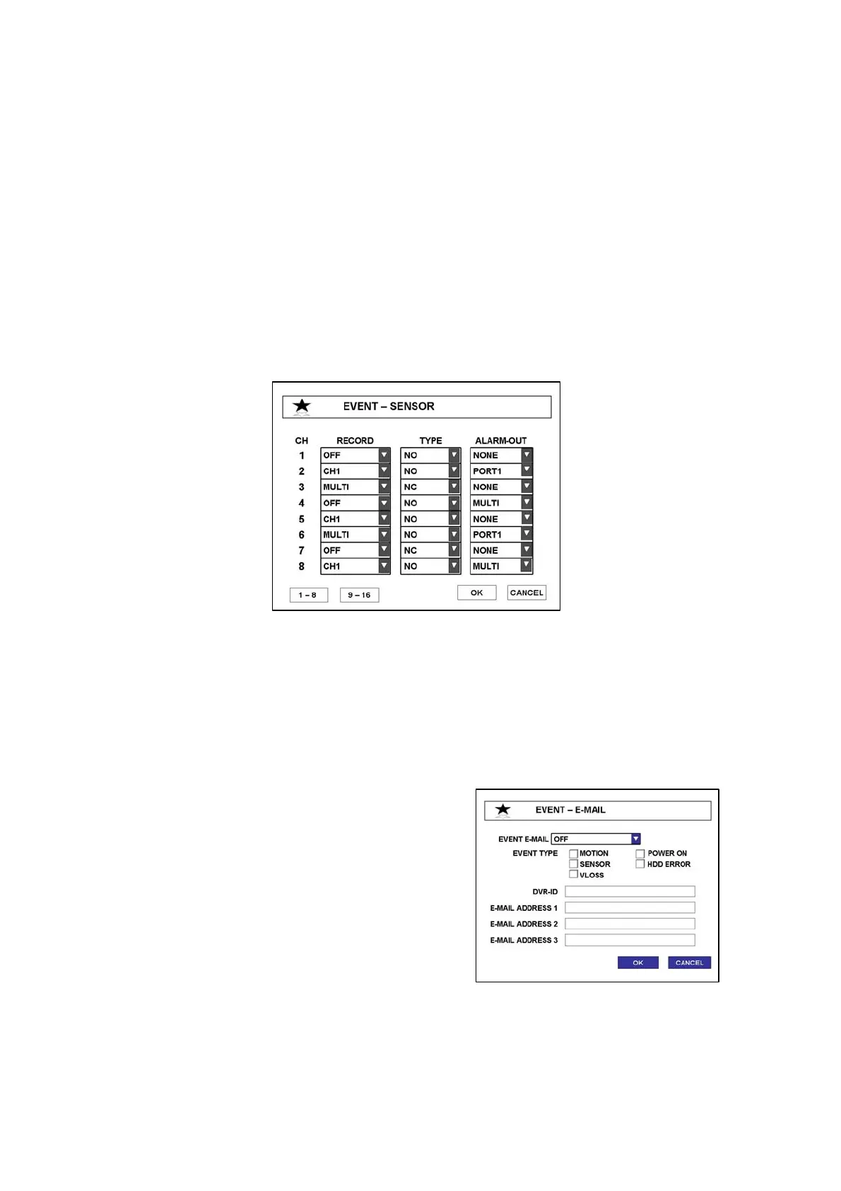 ● RECORD – DVR System starts recording when a signal is detected from sensor.