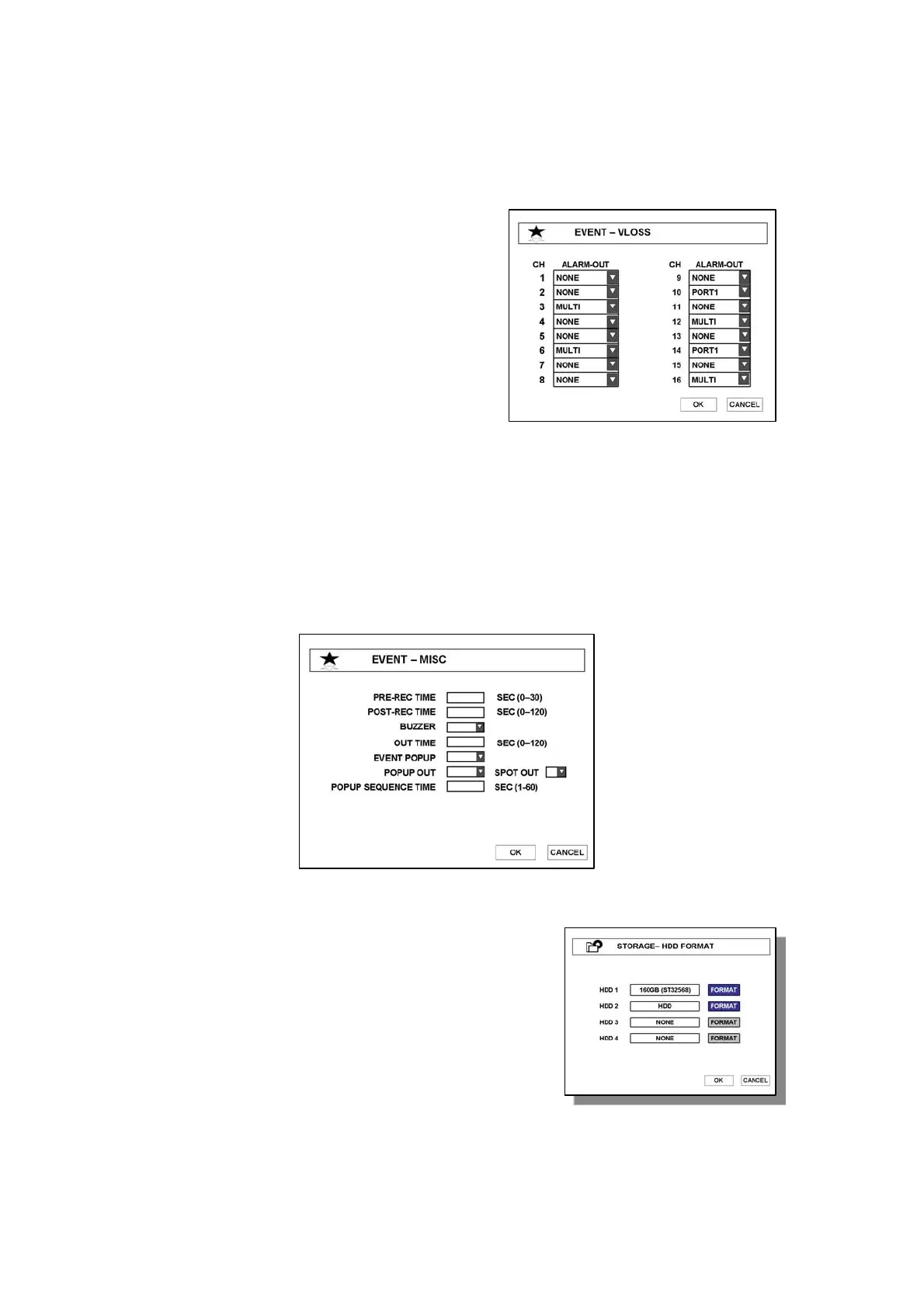 ● POST-REC TIME – Enter recording time (0~120sec) after event occurs