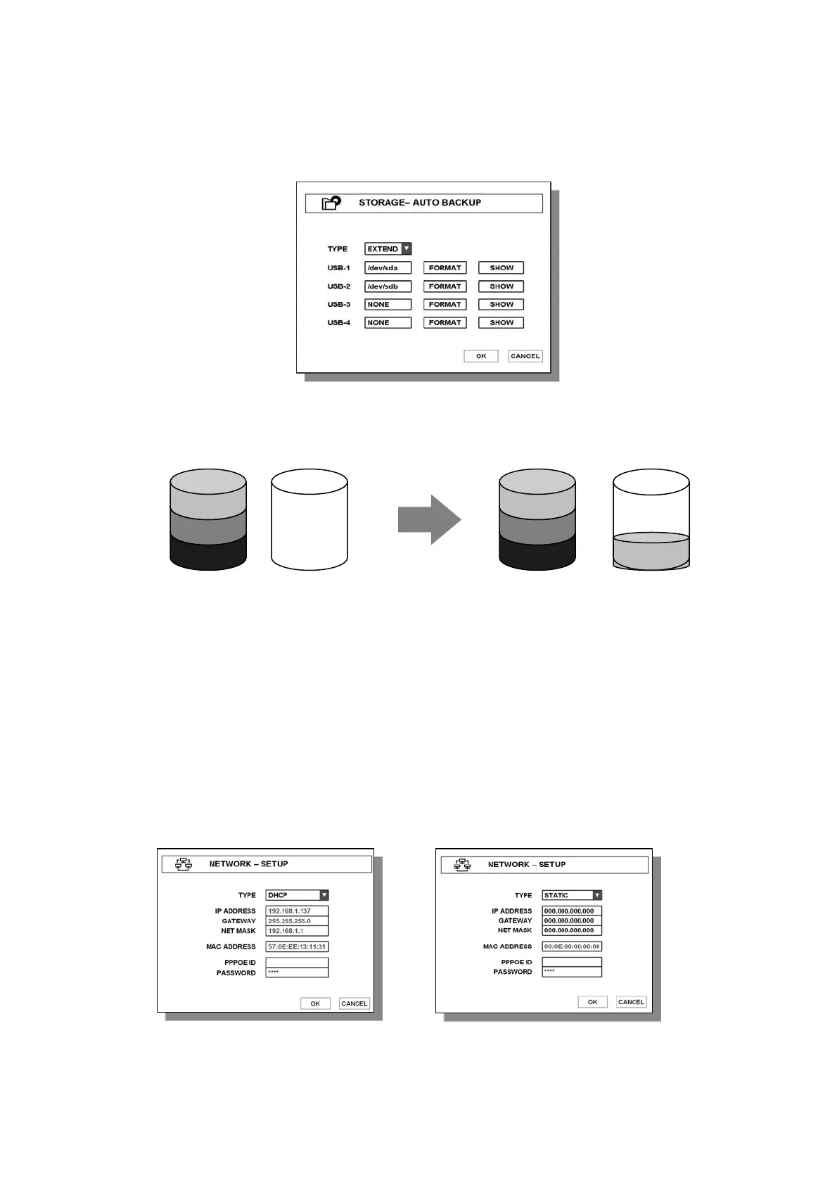 (1) Basically, you can choose between STATIC or DHCP. If you choose DHCP mode, DVR