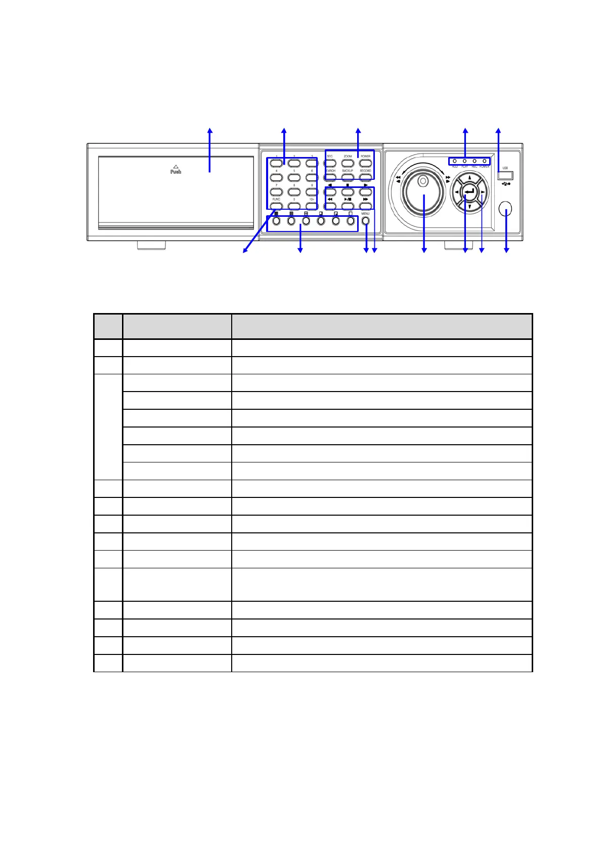 LED Indicator Indicates system status. Power, Record and Hard disk status