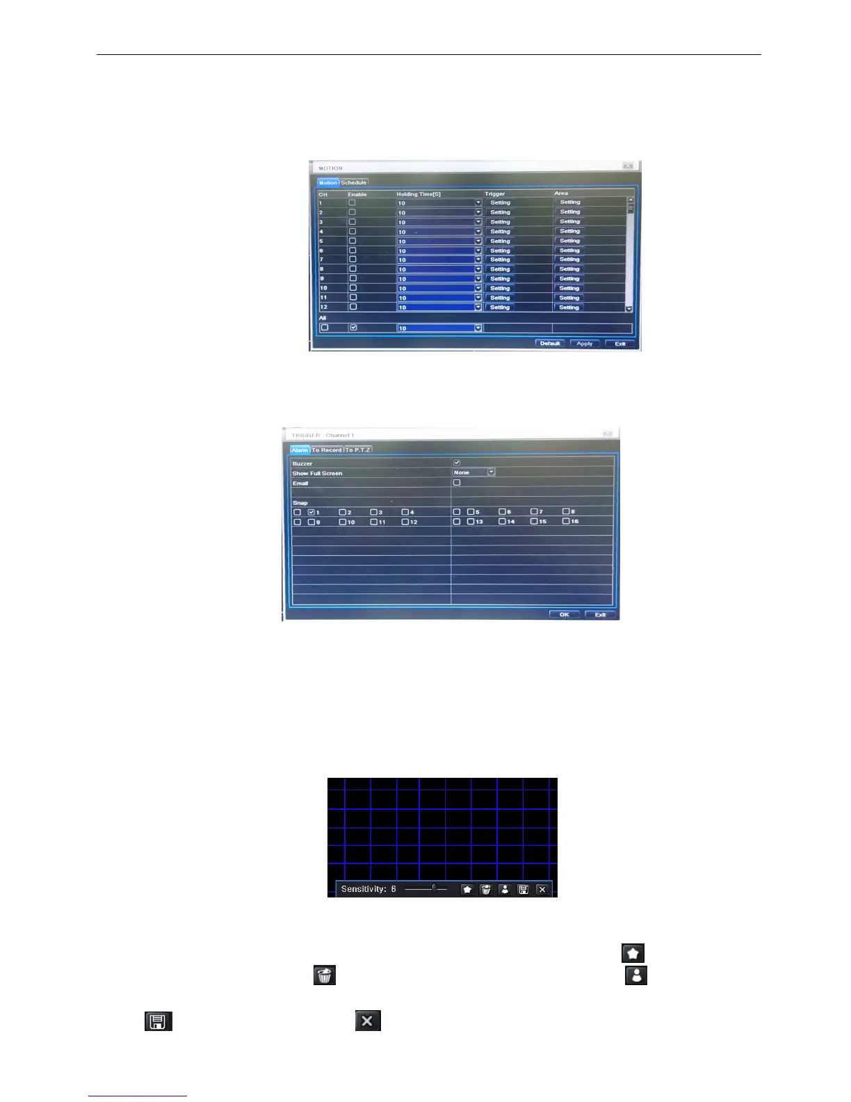 Step1: enter into system configurationalarm configurationmotion; refer to Fig 3-18: