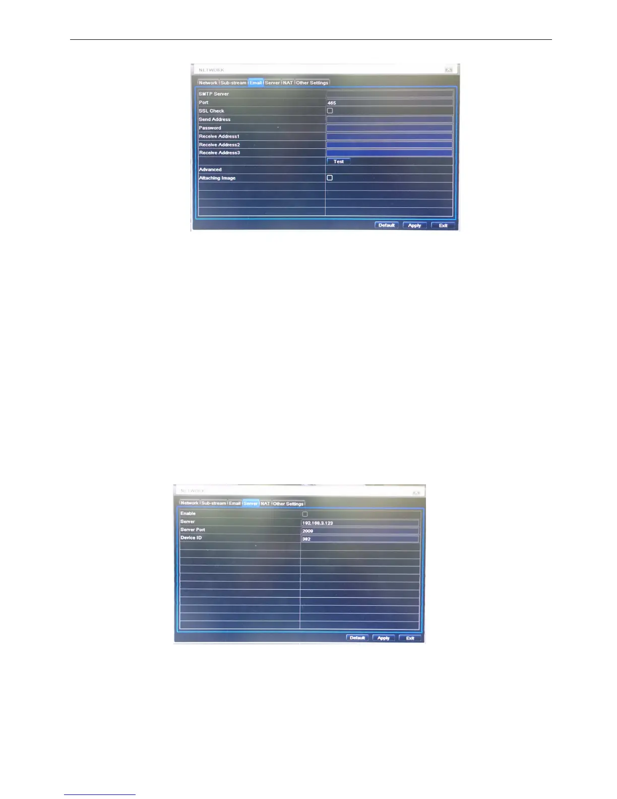 Step1: enter into system configurationnetwork configurationemail; refer to Fig 3-27:
