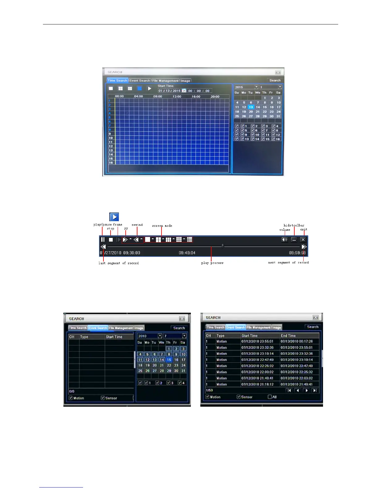 Note: when the monitor resolution is VGA800*600, the time search interface will appear a hide